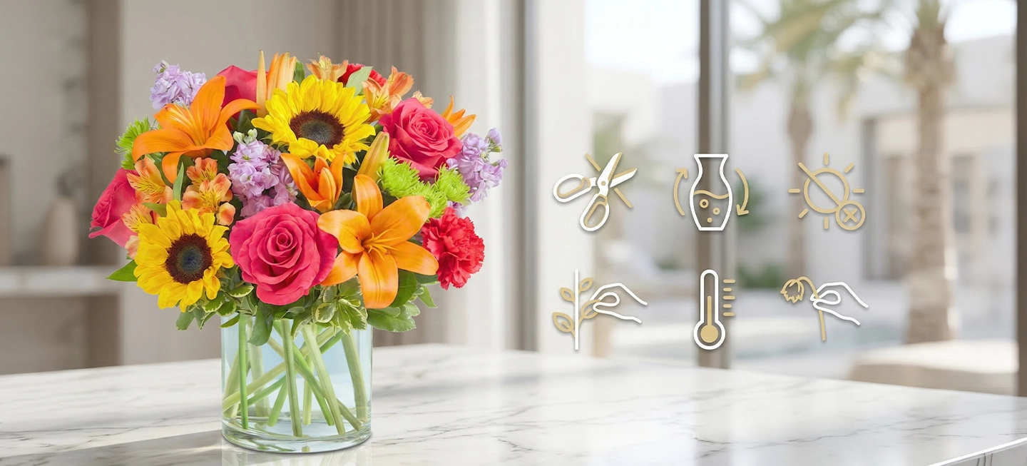 After 15 years of arranging flowers for thousands of occasions across Abu Dhabi, our florists have learned a thing or two. Here are their top tips for getting the most out of every bouquet:
