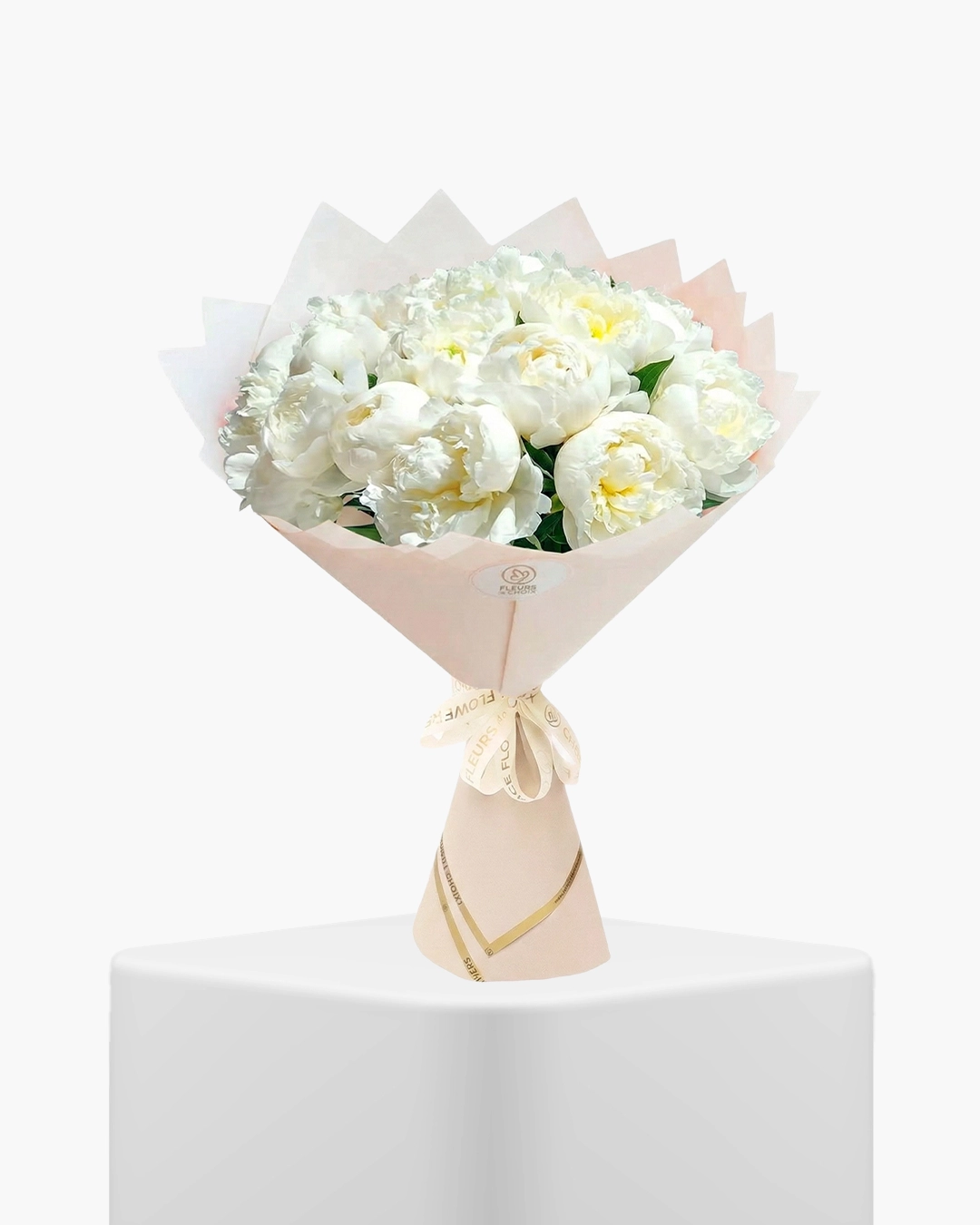 Signature White Peony showcases pure white peony blooms arranged with sculpted precision. White peonies symbolise dignity, sincerity, and composed respect. Their crisp petals feel intentional and clean, while their fullness conveys honour and emotional depth.