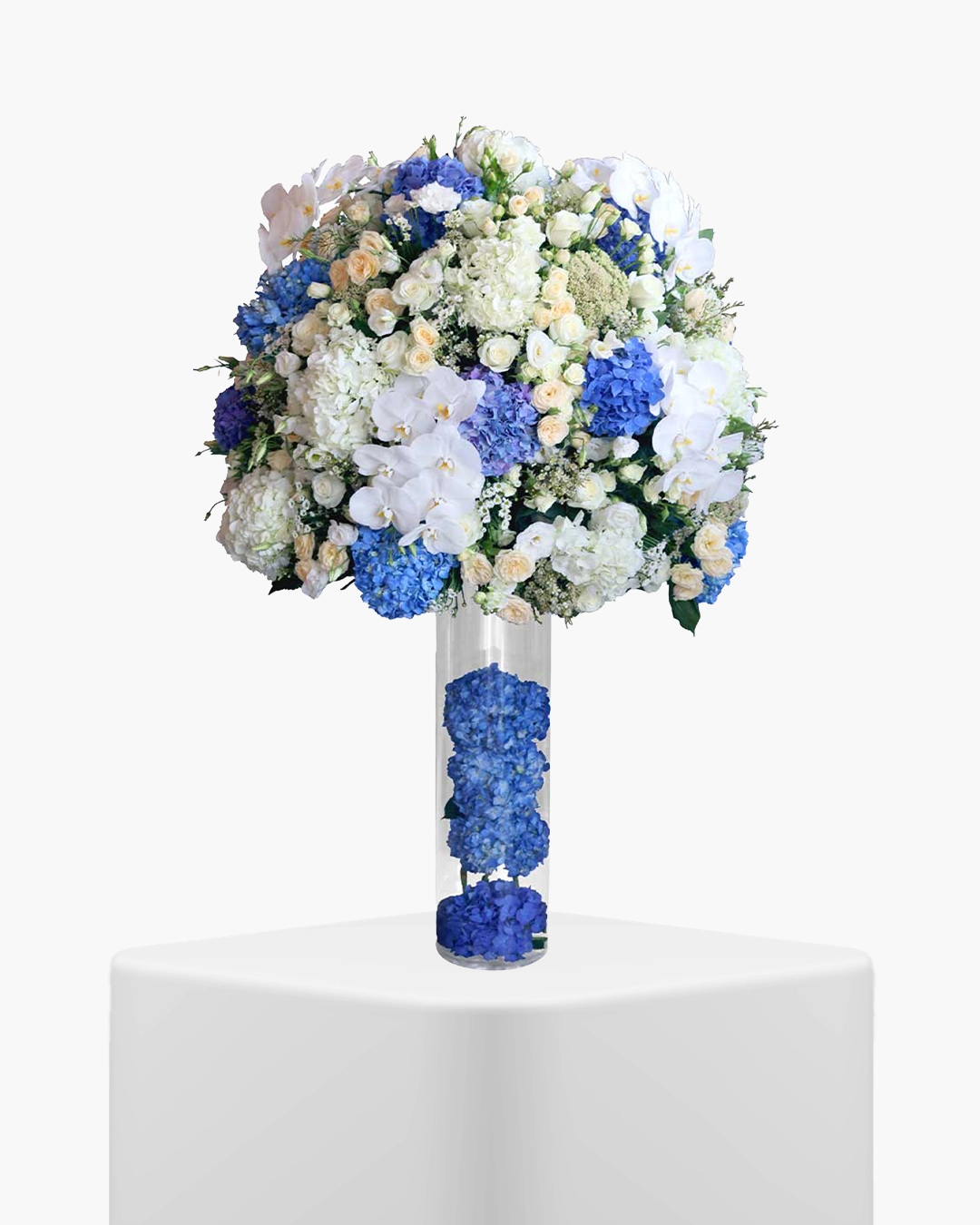 Floral Grandeur Vase features premium flowers arranged in a large-scale standing display. The vertical structure and generous volume create a strong visual presence while maintaining refined styling.