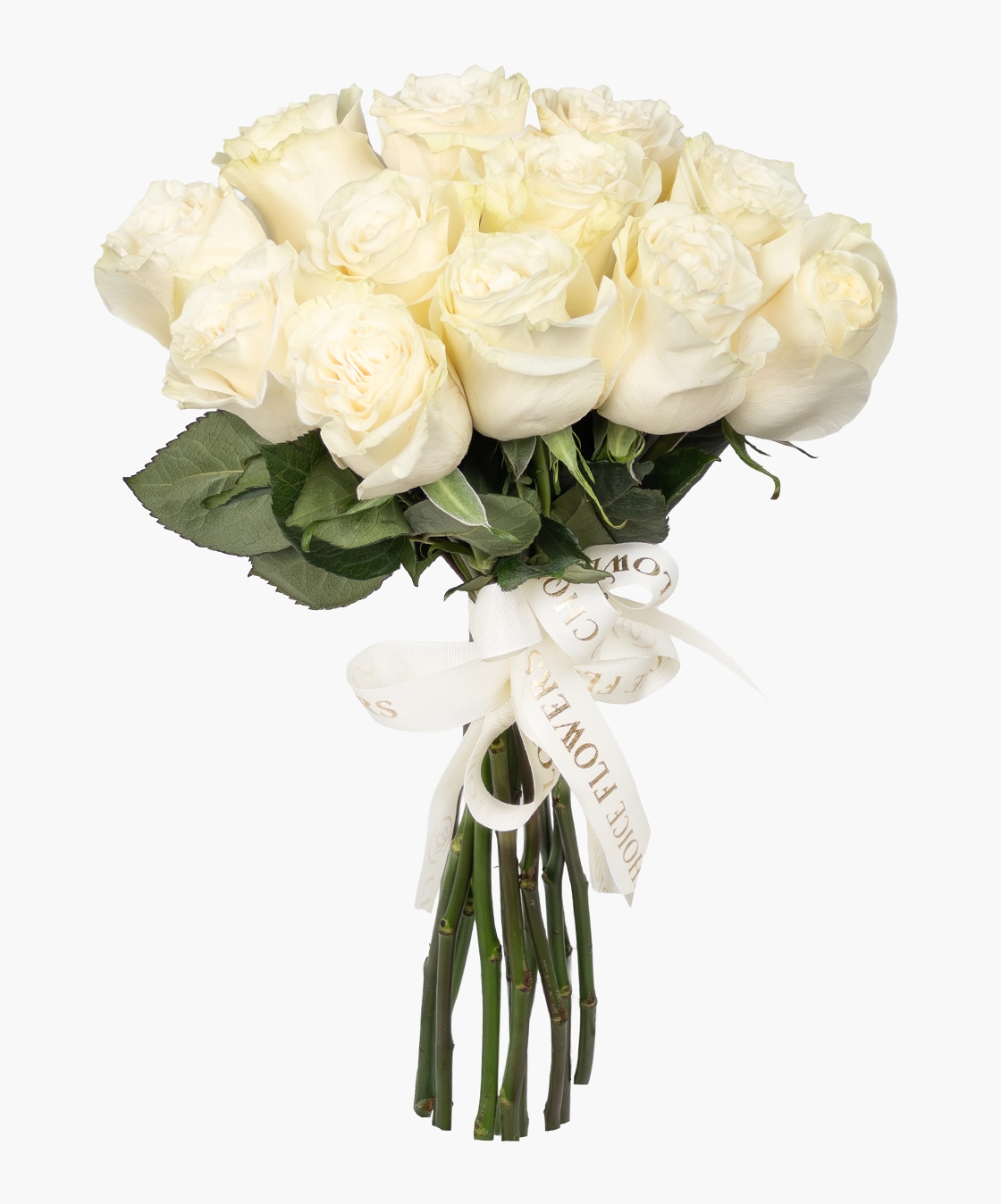 This bunch of white roses opens with softness and simplicity, allowing each bloom to speak without excess. The delicate ribbon finish enhances its classic form, creating a calm and composed floral presence that settles naturally into any space.