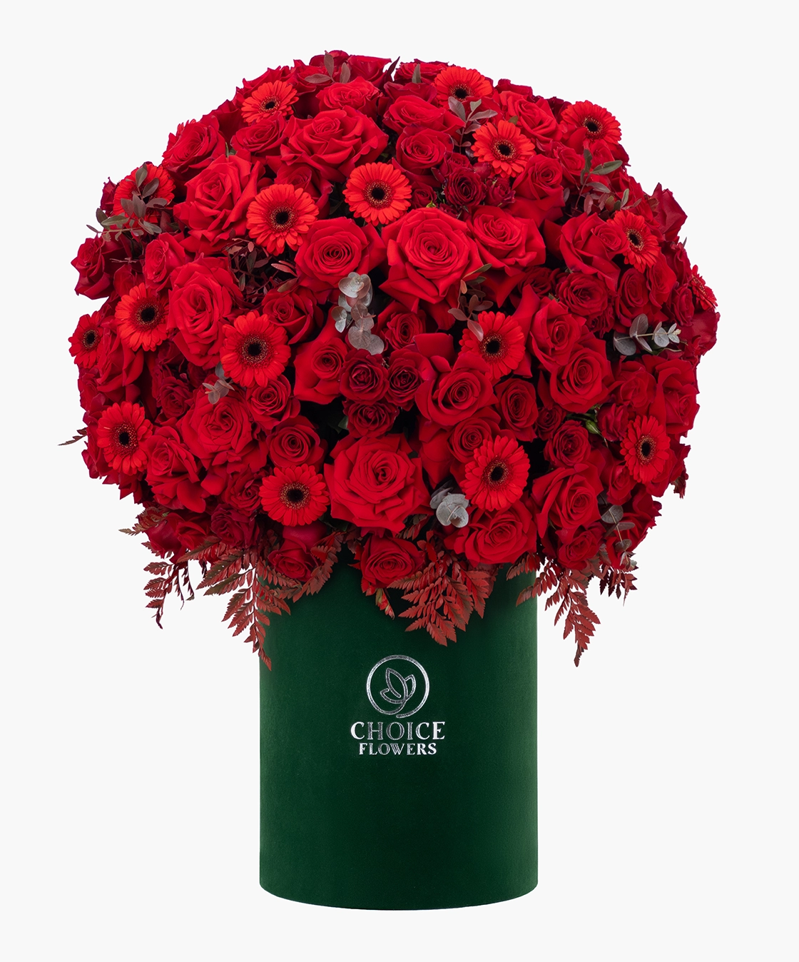 Share a powerful floral gesture that feels rich and unforgettable. This arrangement features deep red roses shaped into a full, elegant dome that instantly draws attention. Soft greenery adds balance, while the premium box gives it a refined finish. Designed for moments that call for bold emotion and timeless beauty.